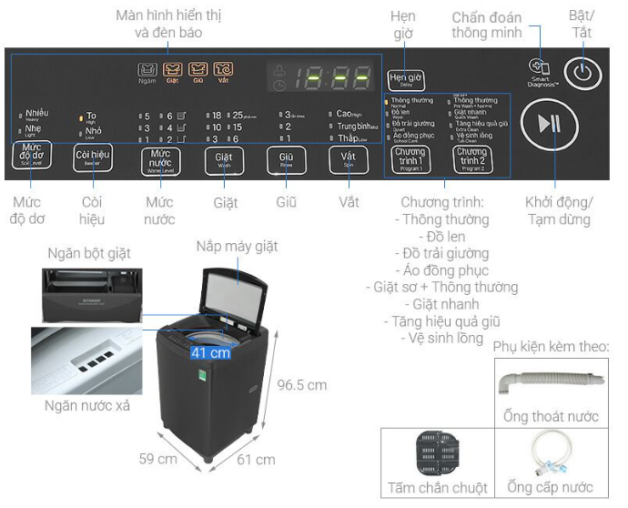 - Bảng điều khiển:Song ngữ Anh – Việt cảm ứng có màn hình hiển thị