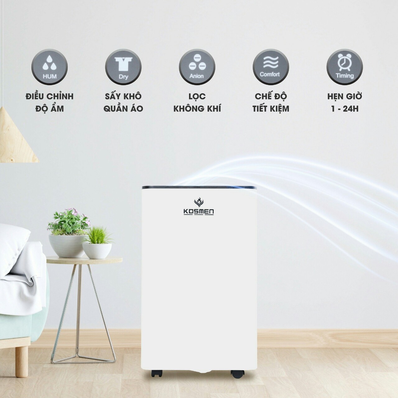 Máy hút ẩm Kosmen KM-60S kết hợp cải tiến nhiều chức năng tiện ích và hiện đại. Sản phẩm đáp ứng mọi nhu cầu cần thiết và là sự lựa chọn hàng đầu cho nhiều gia đình có không gian lớn trong mùa mưa hay mùa nồm của miền Bắc.
