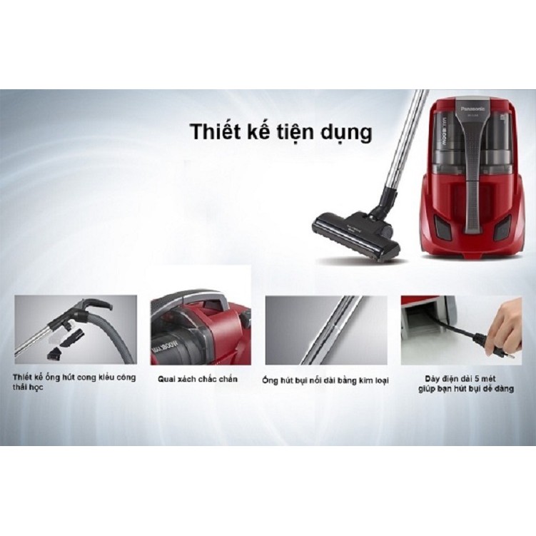 Máy hút bụi Panasonic được trang bị khoang chứa bụi lớn và dễ dàng tháo lắp.