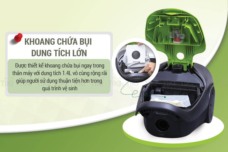 Máy hút bụi Panasonic PAHB-MC-CG370GN46 được thiết kế khoang chứa bụi ngay trong thân máy với dung tích 1.4L vô cùng rộng rãi, giúp người sử dụng thuận tiện hơn trong quá trình vệ sinh mà không cần đổ bụi nhiều lần.