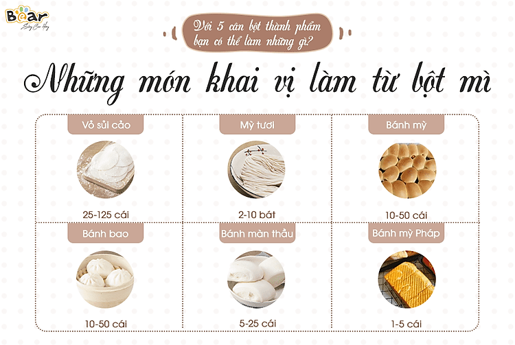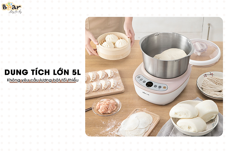 Máy trộn và ủ bột 5L Bear DM-B50V1 (HMJ-A50B1) thích hợp trộn các loại bột như: bánh mì hoa cúc, bánh mì Việt Nam, , vỏ bánh gối, vỏ sủi cảo, mỳ tươi,