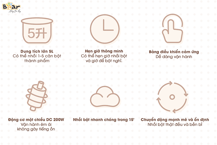 Máy trộn bột Bear 5L tích hợp thêm tính năng ủ bột