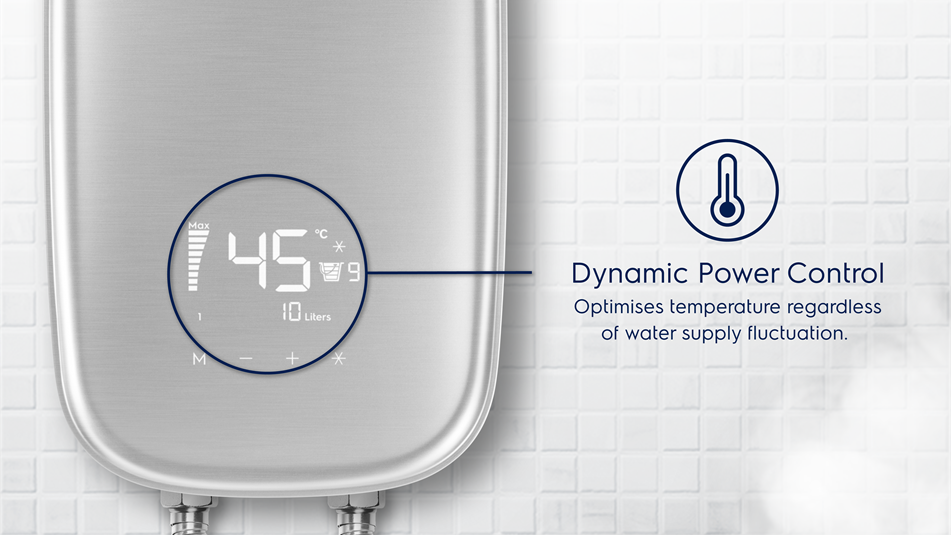 Công nghệ Dynamic Power Control điều chỉnh công suất làm nóng tránh việc nước quá nóng, thậm chí trong trường hợp nguồn nước không ổn định