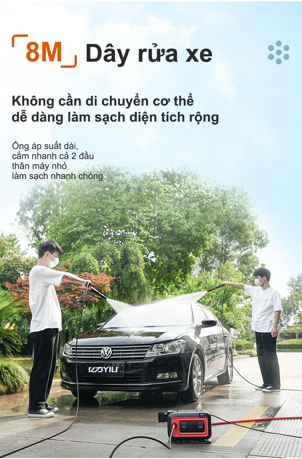 Máy rửa xe cao áp Yili YLQ4280G-Plus rửa xe áp lực cao công suất lớn 1800W có đồng hồ đo áp suất, máy rửa xe gia đình, công nghiệp, thiết kế nhỏ gọn