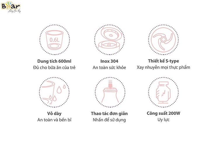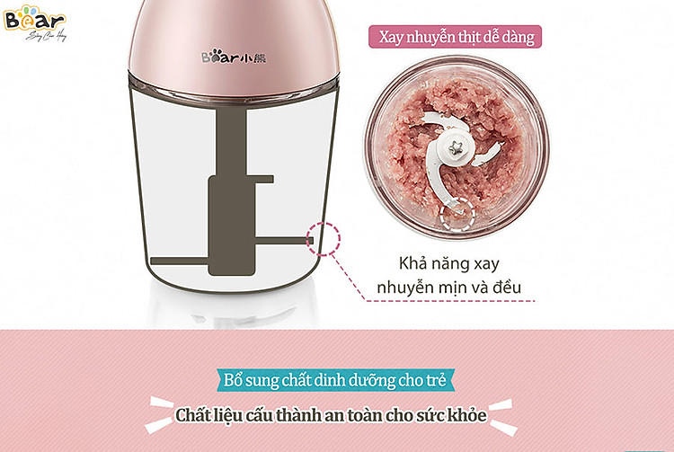 Máy xay ăn dặm, xay thịt, thực phẩm Bear QSJ-B02U2 với thiết kế nhỏ gọn, vừa vặn khuôn tay của bạn mang đến cảm giác thoải mái và dễ dàng hơn khi sử dụng. Được tích hợp lưỡi dao sắc bén với thiết kế thông minh cùng công suất xay lên đén 220W, Máy xay thịt nhỏ gọn Bear QSJ-B02U2 cho hiệu quả xay cực kỳ tốt, giúp bạn tối giản công đoạn xay thịt vất vả, tốn kém thời gian.