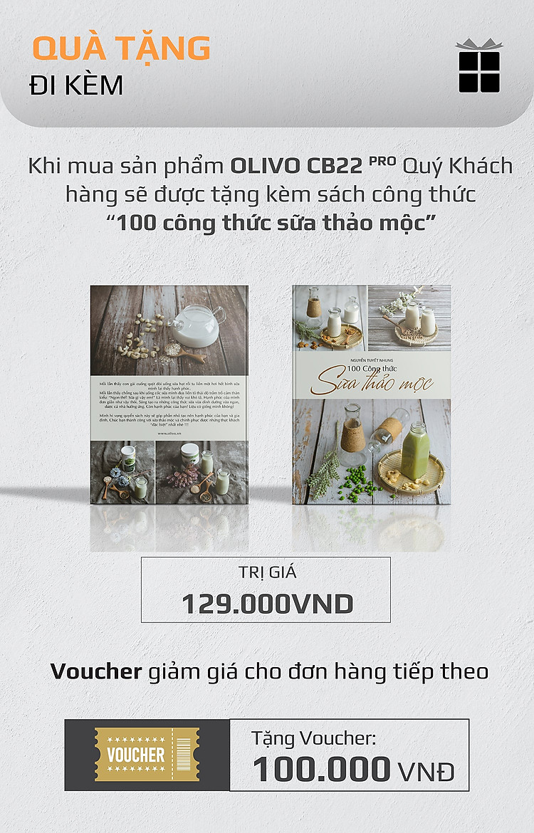 - Olivo CB22Pro với bộ ba chống trào tuyệt đối, có thể xay nấu trong thời gian dài một cách an toàn. Giúp tiết kiệm thời gian vệ sinh sản phẩm sau mỗi lần sử dụng.