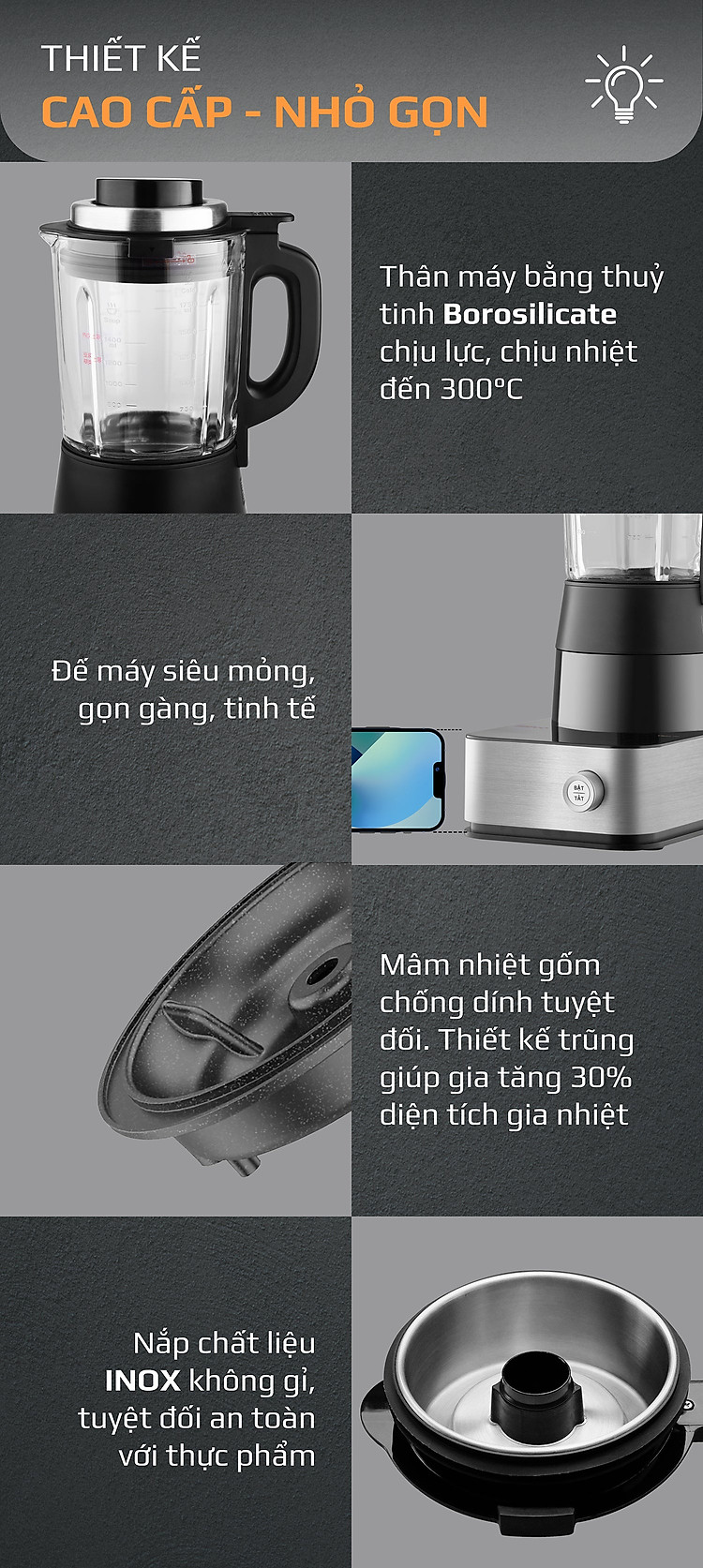 - Thành phẩm nhuyễn mịn mà không cần màng lọc, giúp giữ lại trọn vẹn dưỡng chất của thực phẩm.