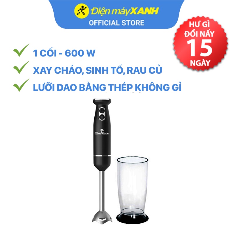 Máy xay sinh tố Bluestone có công suất 600W giúp xay thực phẩm nhanh, mịn, tiết kiệm thời gian. Có thể xay thực phẩm nóng ngay trong nồi, phù hợp xay cháo cho gia đình có em bé.