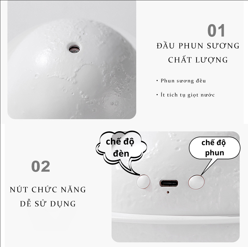 • Dùng để khuếch tán tinh dầu, với công nghệ phun sương Nano giúp mùi hương lan tỏa khắp phòng ở mà không lo bị ẩm ướt đồ vật, hạt nước siêu bé sẽ tự bay hơi tan vào trong không khí, tạo độ ẩm 1 cách tự nhiên.
