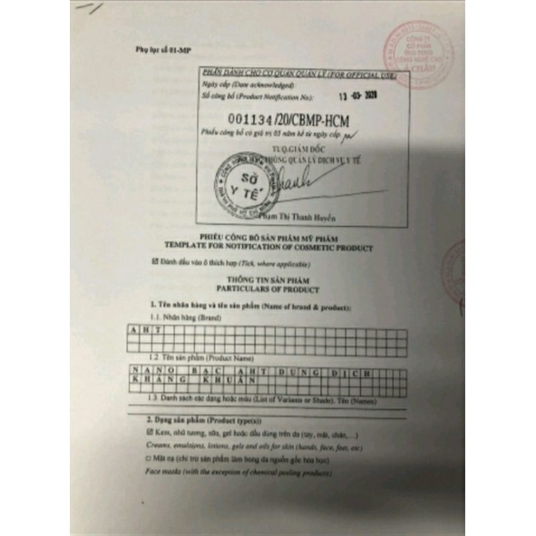 Số công bố : 001134/20/CBMP-HCM do Sở y tế cấp