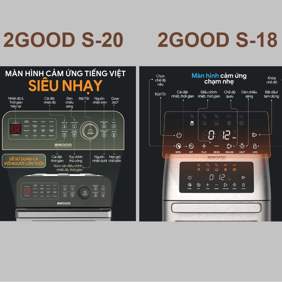 Giới thiệu [Mã ELHADEV giảm 4% đơn 300K] Nồi chiên không dầu 2GOOD Vortex S20, Vortex S18, chất liệu inox 304 - Hàng chính hãng