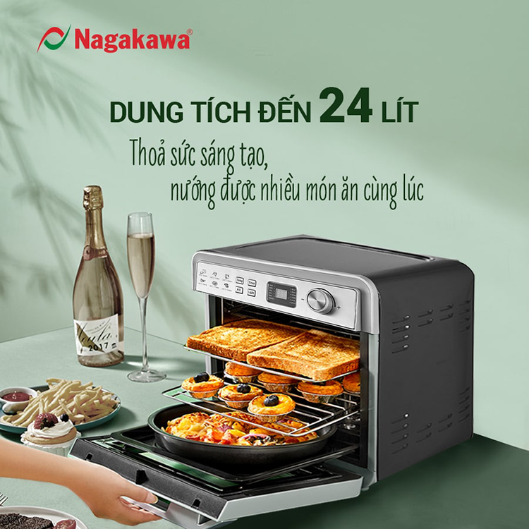 Dung tích 24L phù hợp với các gia đình từ 2 - 10 người hoặc đông người hơn. Với khoang chứa thức ăn rộng như vậy, người nội trợ có thể chiên nướng các món gà, vịt nguyên con mà không cần sắt nhỏ gây tốn thời gian. Bạn sẽ được thưởng thức các món chiên nướng ngon như nhà hàng: ngọt mềm bên trong, chín đều bên ngoài.