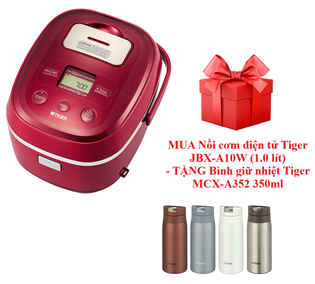 Nồi cơm điện tử Tiger JBX-A10W 5 trong 1 dung tích 1.0 lít được sản xuất tại Việt Nam tuân thủ theo tiêu chuẩn TIGER và khắt khe hơn tiêu chuẩn chung của Nhật Bản đặc biệt sản phẩm sản xuất tại Việt Nam có chất lượng cao như sản phẩm được sản xuất tại Nhật Bản và Trung Quốc với thiết kế nhỏ gọn, nhiều màu sắc trẻ trung, sang trọng, hiện đại và an toàn luôn luôn có mặt trong mọi không gian nhà bếp. Bên cạnh đó, với cấu tạo từ linh kiện cao cấp và nhựa thân thiện môi trường, cứng cáp, bền bỉ và chịu nhiệt tốt giữ nồi cơm điện tử lâu phai màu, không mau dơ với độ bền cao theo thời gian sử dụng. Ngoài ra, Nồi cơm điện tử Tiger có cốc đong gạo, ngăn cắm muỗng, muỗng xới cơm (chịu nhiệt lên đến 120ºC), khay nấu đồng thời, khay đặt thực phẩm tươi, sách hướng dẫn các thực đơn nấu ăn kèm theo sản phẩm tiện lợi cho bữa cơm gia đình.