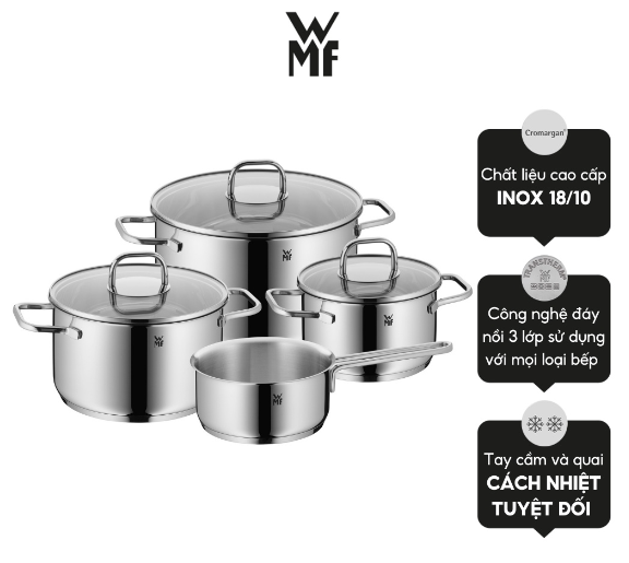 Bộ Nồi WMF INSPIRATION 4 Món Đáy Từ 3 Lớp Nguyên Khối Thép Không Gỉ Cromargan