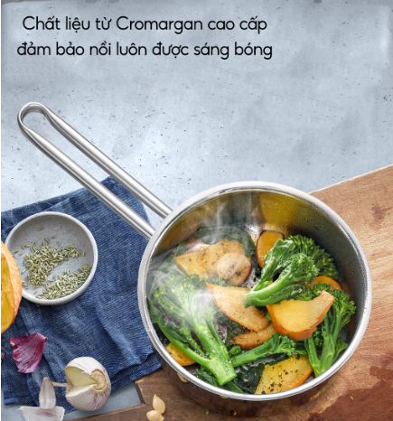 - Độ bền cao, đúc nguyên khối từ chất liệu thép không gỉ Cromargan 18/10 cao cấp, hấp thụ nhiệt nhanh, tản nhiệt đều, tiết kiệm 70% năng lượng, loại bỏ 14 tạp chất gây ung thư.