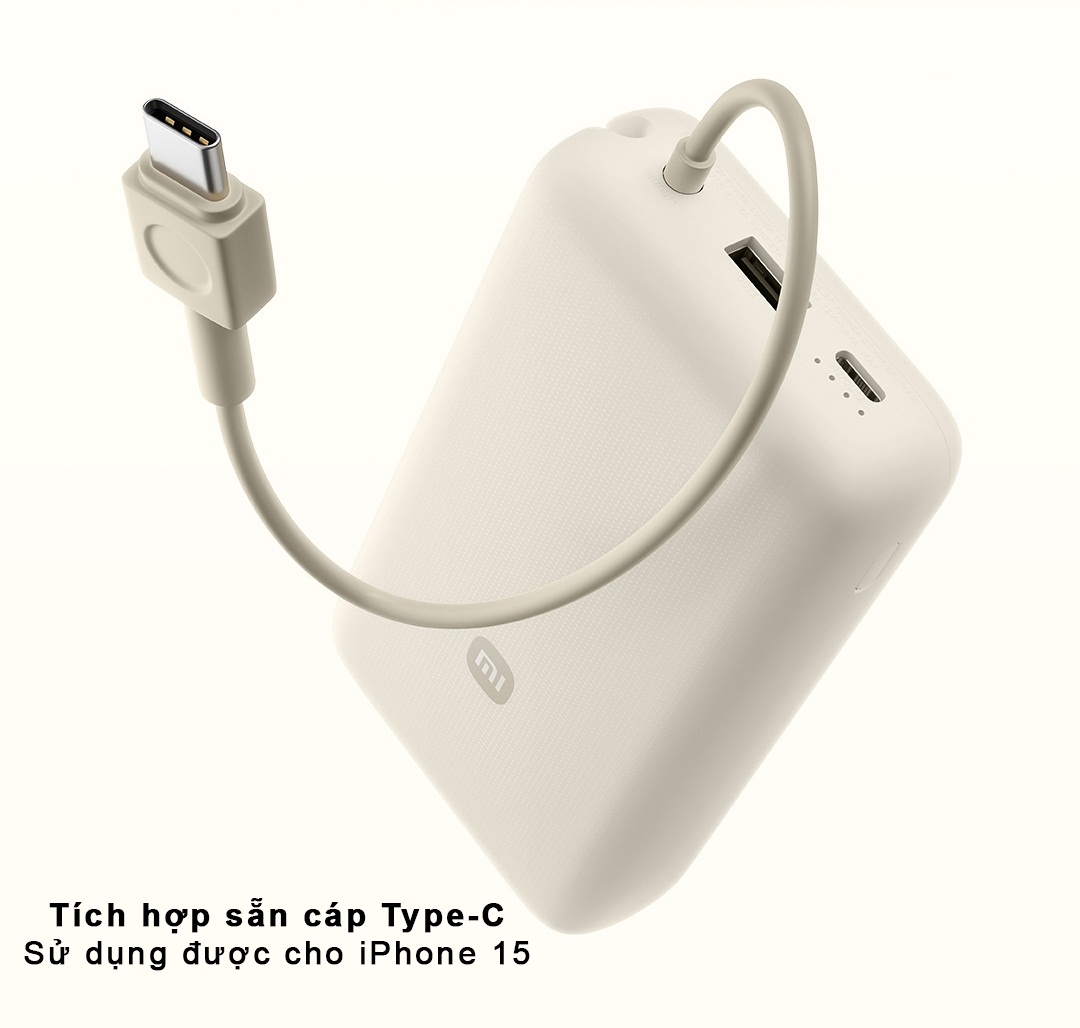 Điểm đặc biệt và khá "ăn tiền" trên pin dự phòng Xiaomi này là được tích hợp sẵn một cáp sạc hai chiều Type-C ngay trên đầu pin, với khả năng uốn gập đến 180˚ vô cùng bền bỉ và dẻo dai. Cái giá trị là sợi cáp này có thể sạc ra và sạc vào cho pin mà không cần thêm bất kỳ sợi cáp rời nào. Bên cạnh đó còn cung cấp dòng sạc tối đa lên đến 33W, hỗ trợ đáp ứng tốt nhu cầu sạc pin cho mọi dòng điện thoại, bao gồm cả iPhone 15 mới nhất.