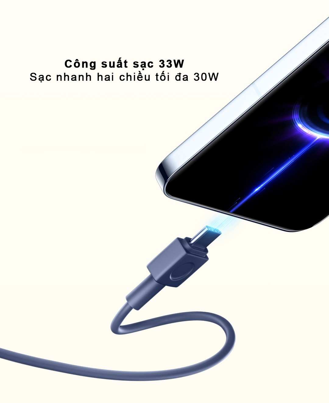 Khi sử dụng với các dòng smartphone của Xiaomi có chức năng sạc nhanh thông minh, công suất sạc của pin dự phòng có thể đạt tới 33W. Bên cạnh đó, sợi cáp được tích hợp sẵn trên thân pin còn hỗ trợ sạc nhanh hai chiều với công suất tối đa 30W, giúp nó tiết kiệm đáng kể thời gian tự sạc cho mình.