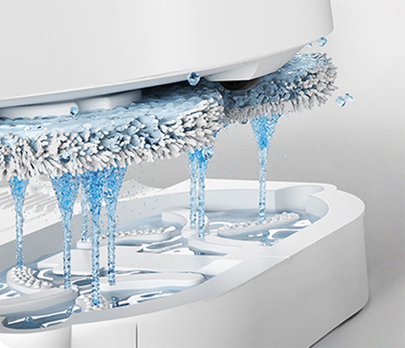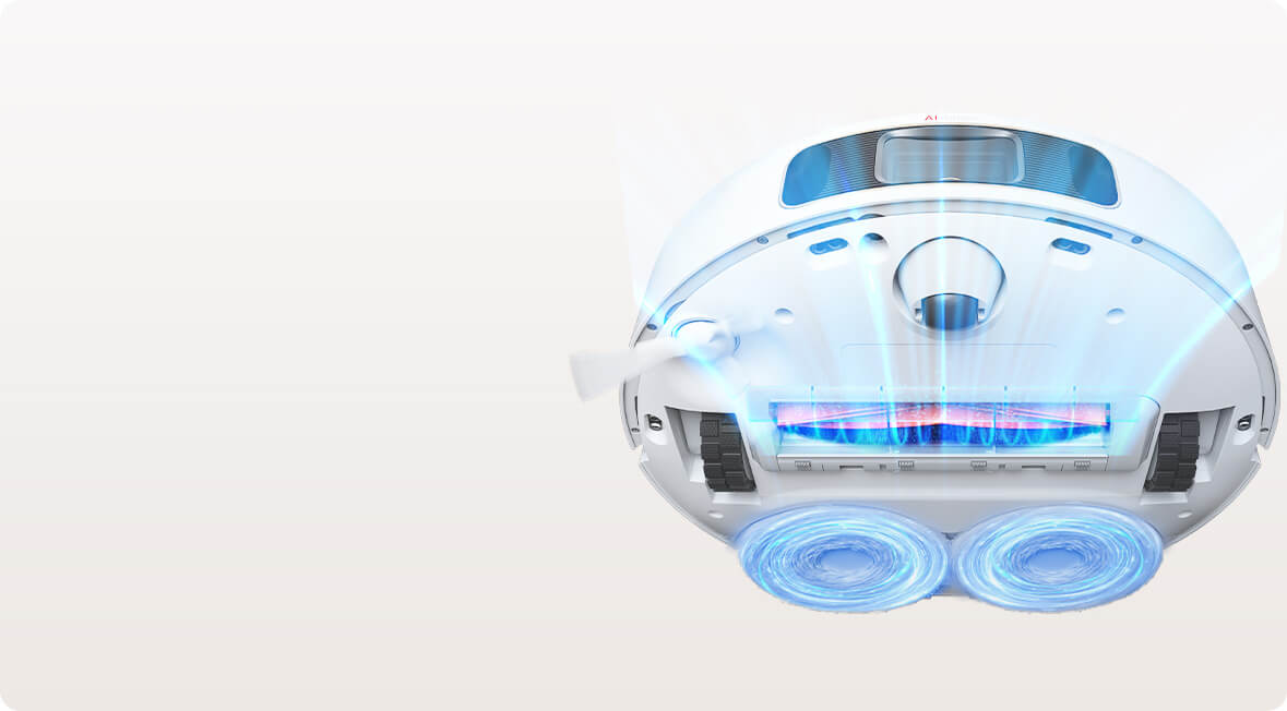 Lực hút 5300 Pa, kết hợp với chổi cạnh, chổi chính bằng cao su và lông, cùng với cặp khăn lau xoay 180 vòng/phút giúp làm sạch đường đi chỉ trong 1 lần di chuyển