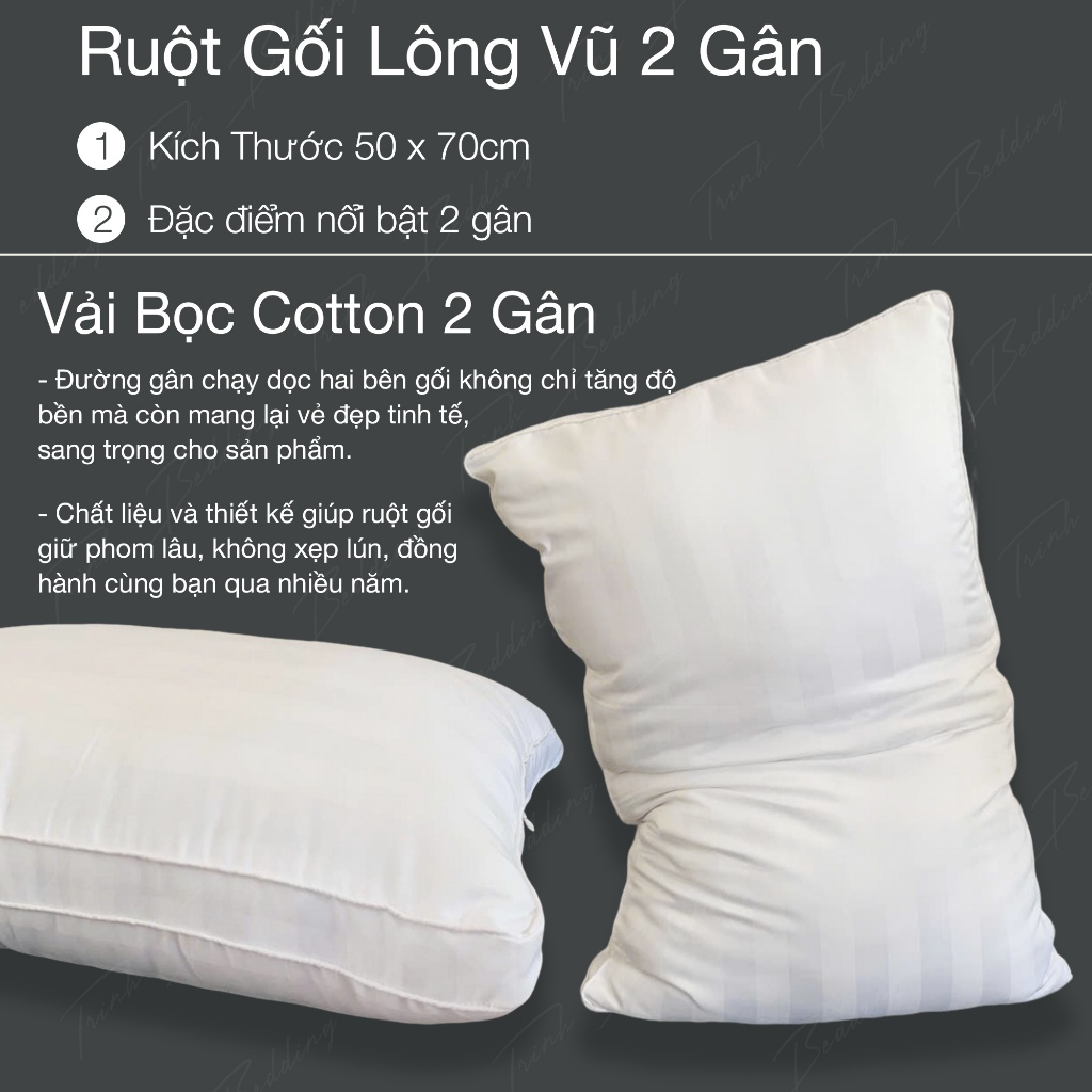 Ruột Gối Lông Vũ Chuẩn Khách Sạn 5 Sao Bông Sợi Cực Mịn Cảm Giác Nằm Êm Ái Trinh Bedding 50x70cm
