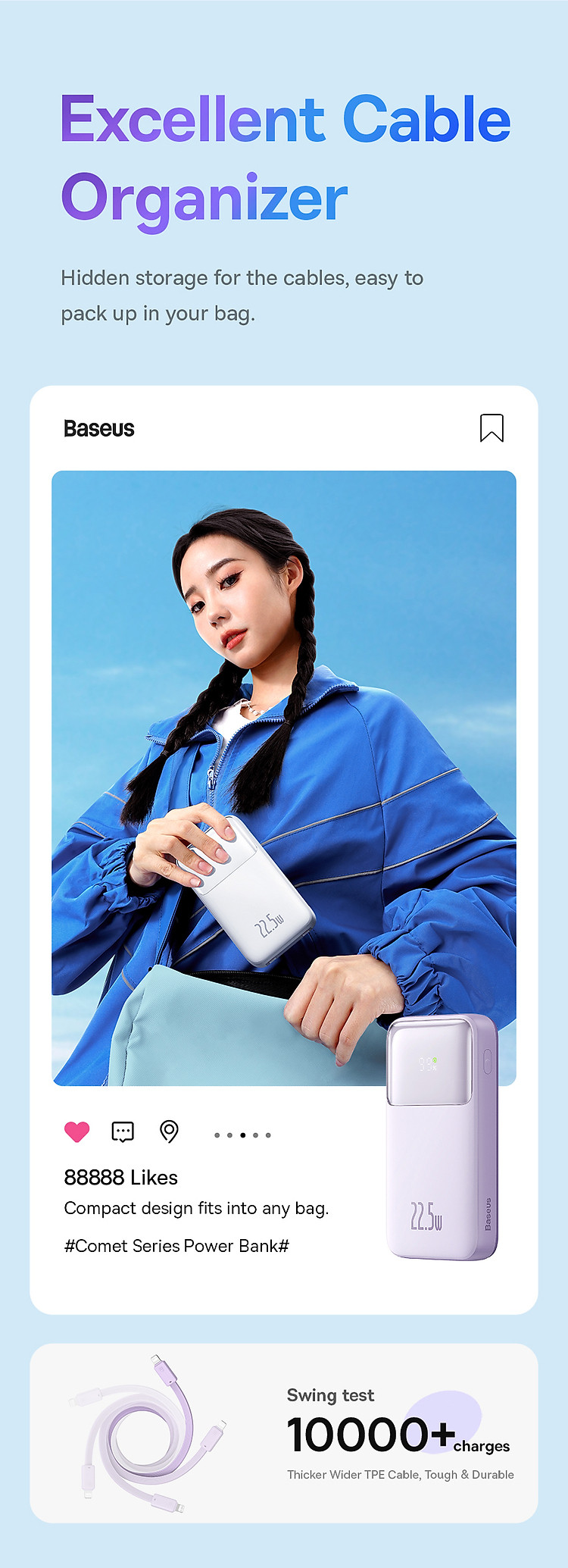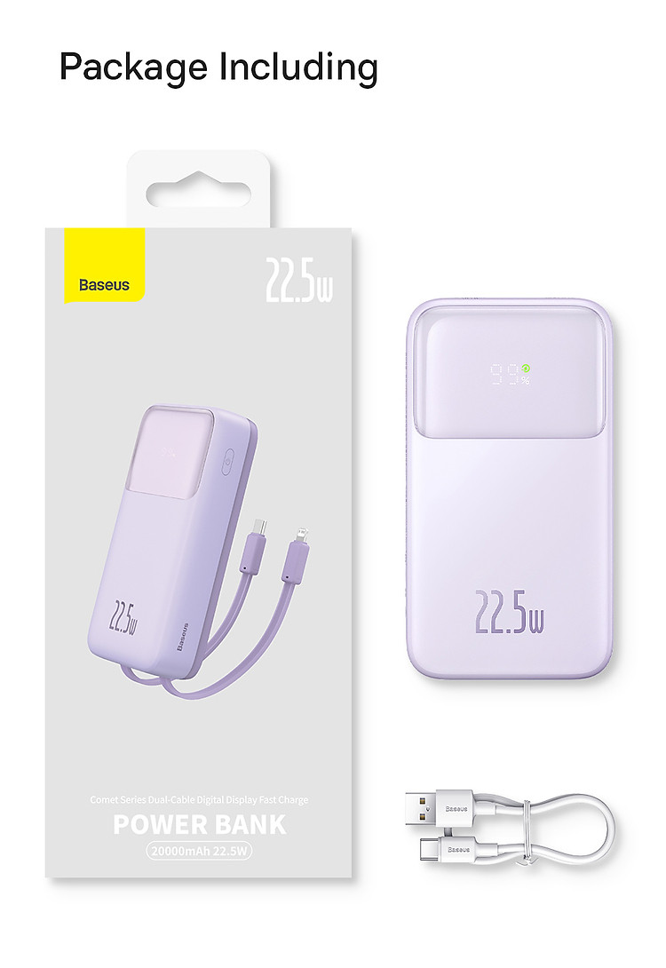 | Tên | Sạc Dự Phòng OS-Baseus Comet Series Dual-Cable Digital Display Fast Charge Power Bank (Kèm dây sạc USB to C, 30cm) |