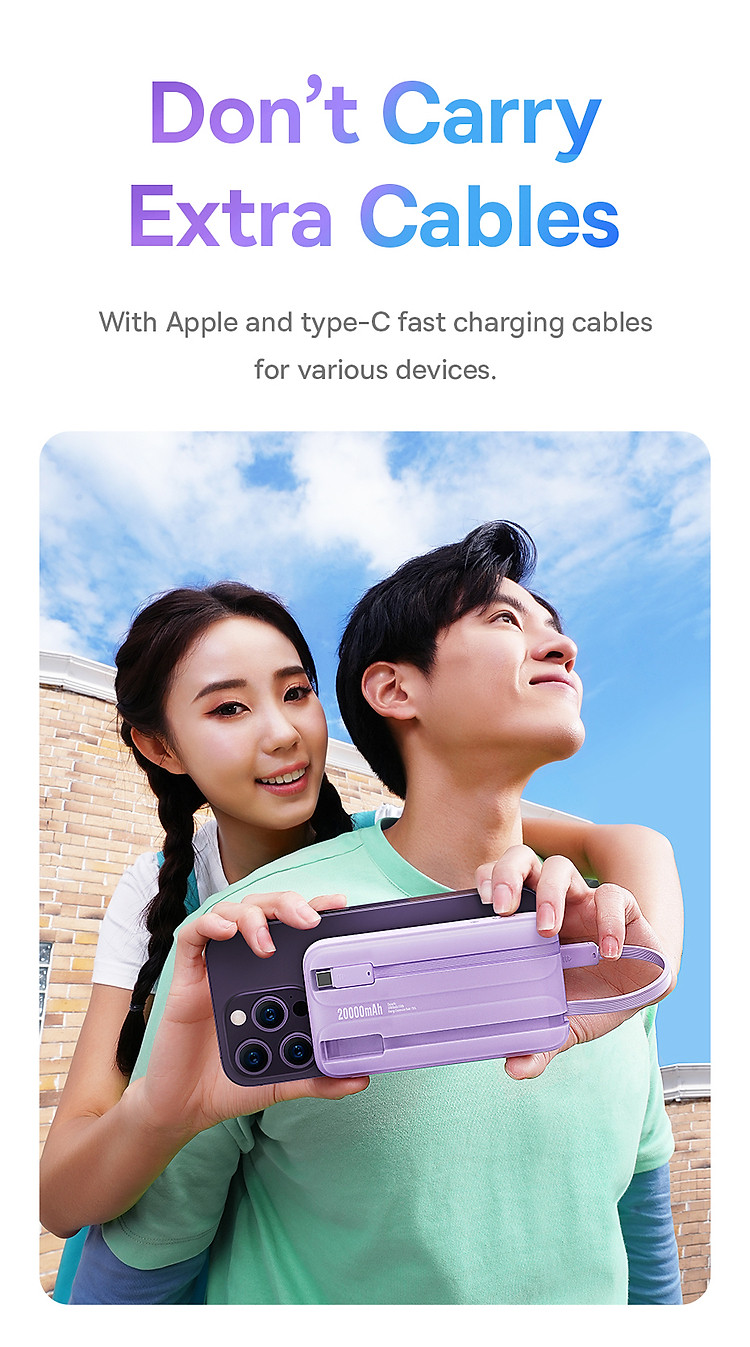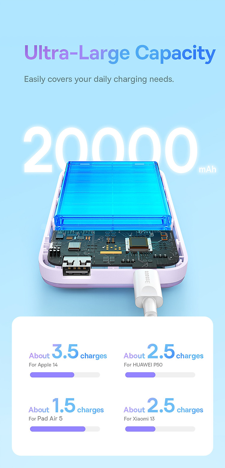 Với dung lượng pin lên đến 10.000mAh/20.000mAh, sạc dự phòng này có thể cung cấp đủ năng lượng để sạc lại nhiều lần cho thiết bị của bạn. Bên cạnh đó, thiết bị cũng được trang bị tính năng sạc nhanh PD và QC 3.0 giúp tiết kiệm thời gian sạc của người dùng.