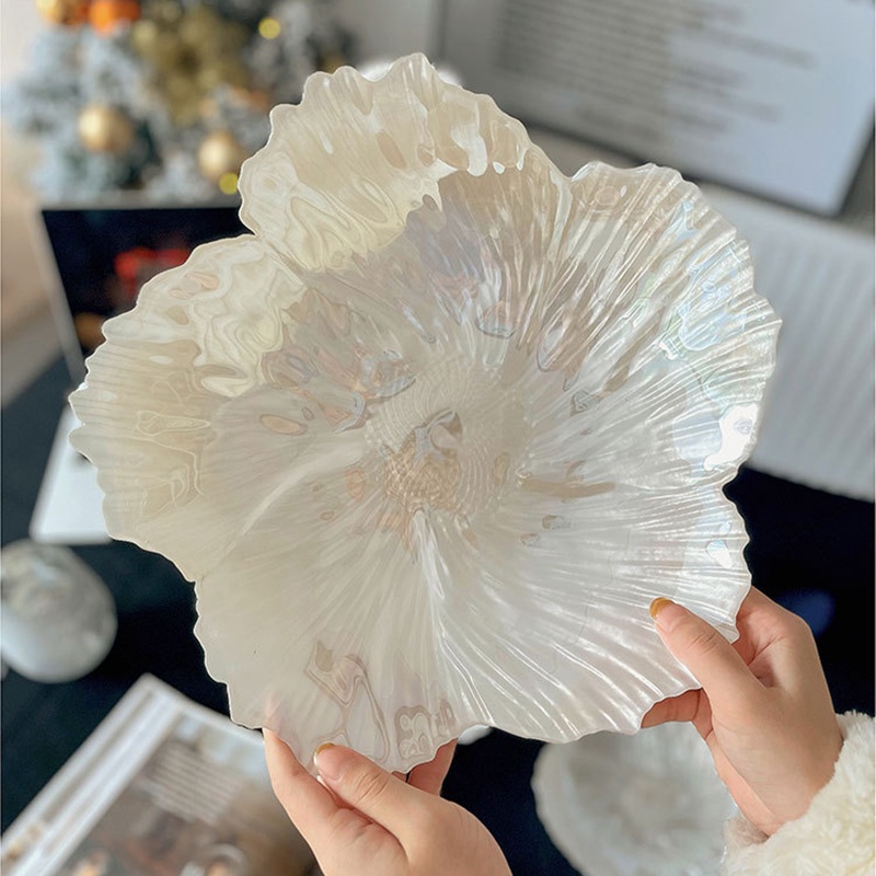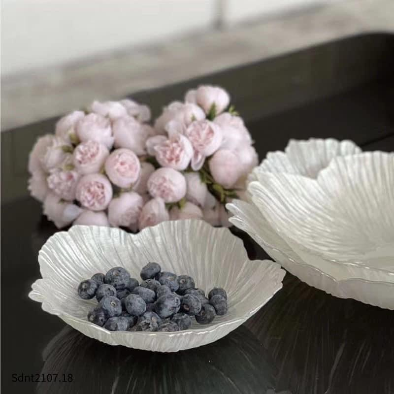 Set 3 Đĩa Thủy Tinh Ngọc Trai - Khay Thủy Tinh Đựng Trái Cây Hình Cánh Hoa Sang Trọng Phong Cách Bắc Âu Trang Trí Nội Thất - HÀNG CHÍNH HÃNG MINIIN