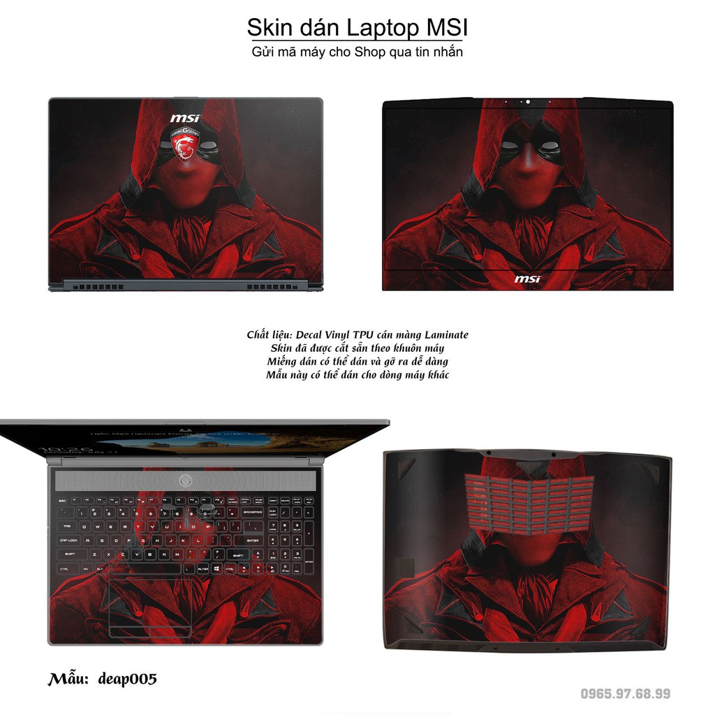 Giới thiệu Skin dán Laptop MSI in hình Deadpool (inbox mã máy cho Shop)