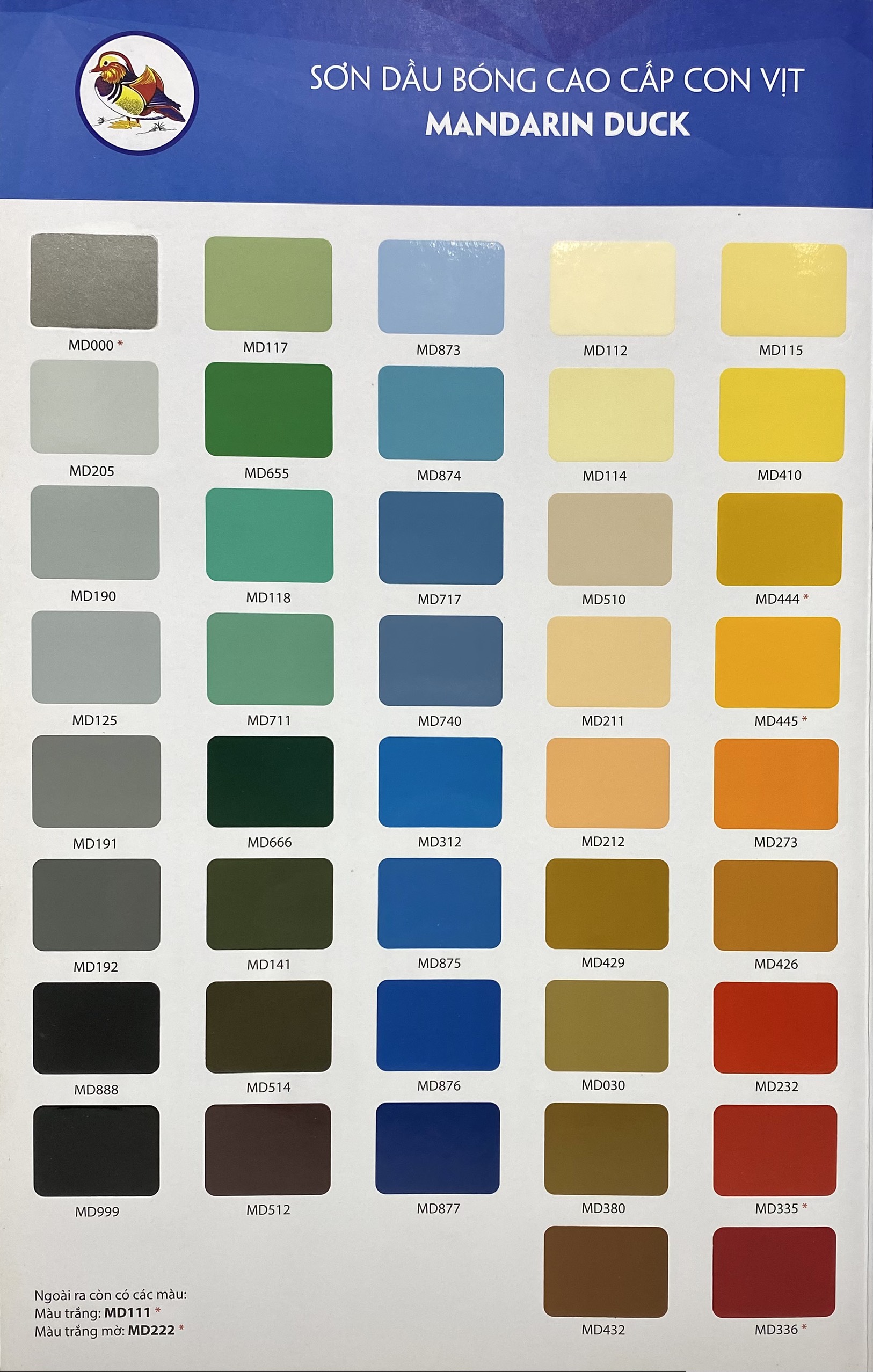 Sơn dầu bóng cao cấp Con Vịt (Mandarin Duck) là loại sơn Alkyd chất lượng cao, không sử dụng Chì & Chất gây hại, là loại sơn an toàn cho sức khoẻ với các tính năng: Khô nhanh, màng sơn bóng đẹp, độ phủ cao, chống nấm mốc, màu sắc tươi đẹp.