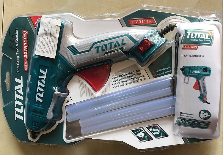 Súng bắn keo nến dùng điện 25W (150W) TOTAL TT201116 được dùng để dán các vật liệu như gỗ, nhựa, kim loại và thậm chí cả vải.