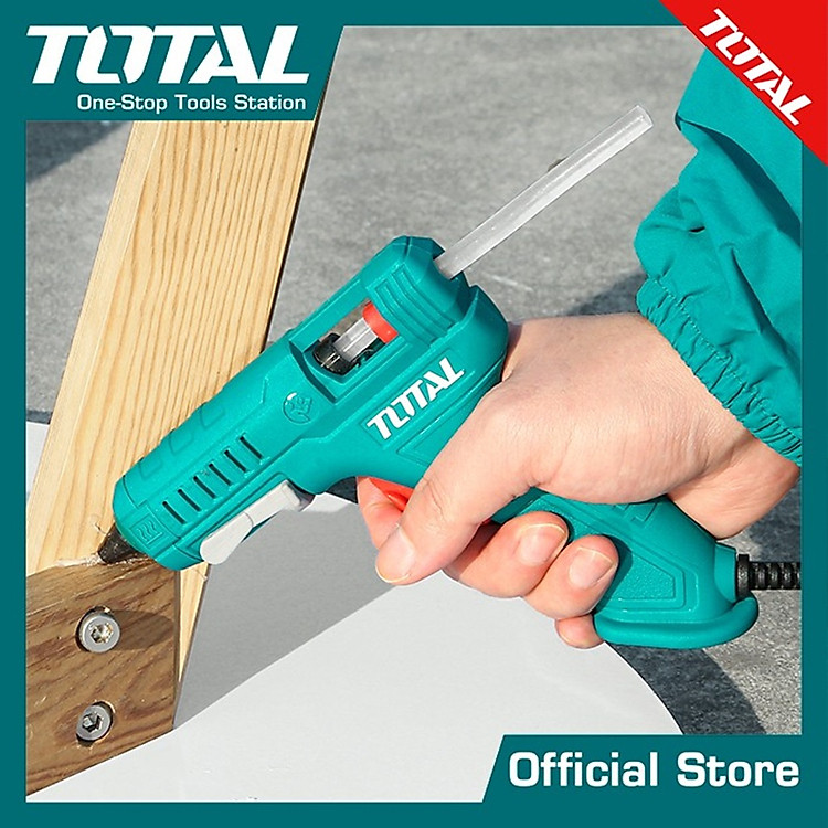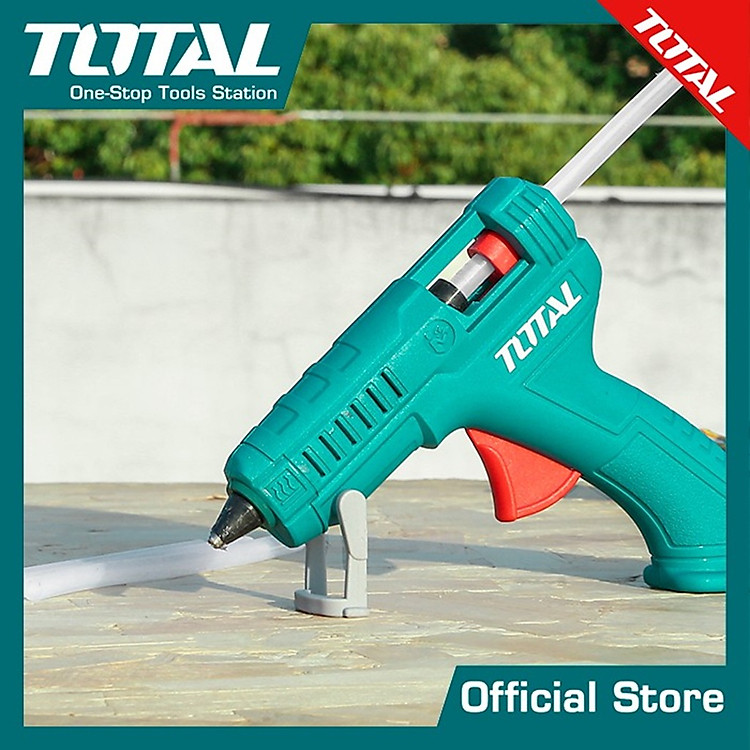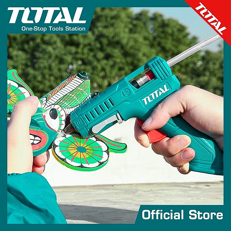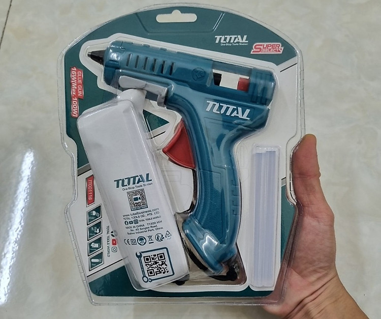 Súng bắn keo nến dùng điện tặng kèm 2 thanh keo 16W (100W) TOTAL TT001116 được dùng để dán các vật liệu như gỗ, nhựa, kim loại và thậm chí cả vải.