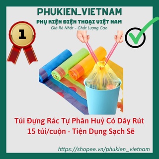Túi Đựng Rác Tự Phân Huỷ Có Dây Rút - 15 túi/cuộn - Tiện Dụng Sạch Sẽ