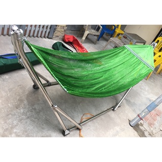 Bộ khung Võng xếp chất liệu inox 201 ống tròn tặng kèm Võng lưới nhiều màu ( đỏ, xanh dương, xanh lá , xám ) cao cấp