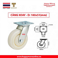 Bánh xe đẩy nylon tải nhẹ càng xoay 360 độ - 50-65-75mm - Happy Move Thái Lan