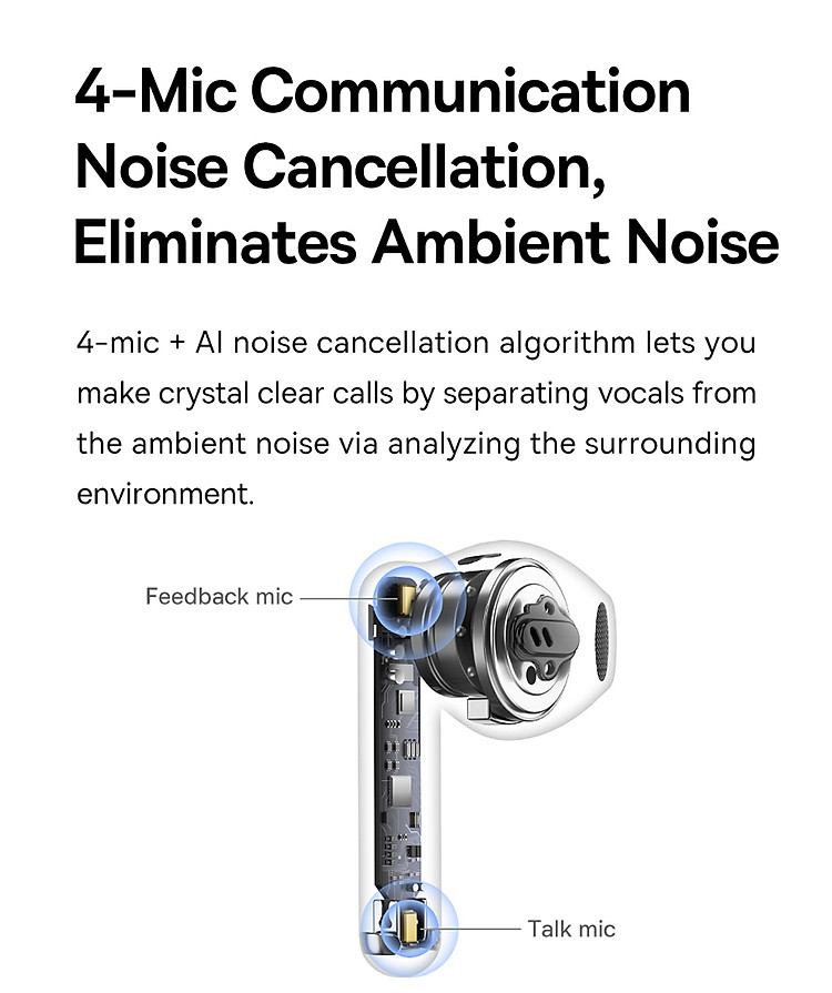 OS-Baseus Bowie WX5 True Wireless Earphones có khả năng tái tạo âm thanh tốt. Với driver động đường kính lớn, tai nghe cung cấp âm thanh chất lượng cao, trung thực và rõ ràng. Bạn có thể tận hưởng âm nhạc yêu thích của mình với các dải tần số rộng và bass mạnh mẽ. Ngoài ra, tai nghe còn hỗ trợ công nghệ giảm tiếng ồn, giúp bạn tập trung vào âm thanh mà không bị xao lạc bởi tiếng ồn xung quanh.