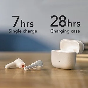 Nghe nhạc lên đến 7 giờ mỗi lần sạc hoặc mở rộng thêm đến 28 giờ với hộp đựng kiêm sạc.