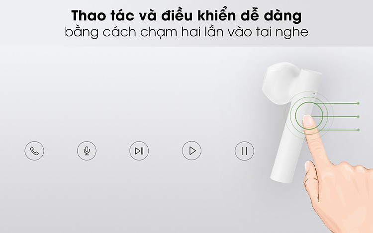 Thao tác các tính năng như: Nhận/tắt cuộc gọi, phát/dừng nhạc, một cách nhanh chóng bằng cách chạm hai lần vào vùng cảm ứng trên tai nghe.