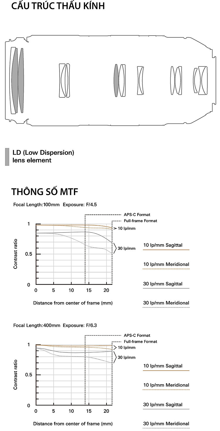 Tổng quanHệ cảm biến: Full-frameLoại ống kính: Tele-photoNgàm: Canon EF, Nikon FMade in: Nhật BảnTamron 100-400mm f/4.5-6.3 Di VC USD (A035)Hệ thống kiểm soát hai mô tơ MPU mới (chip xử lý đa c...
