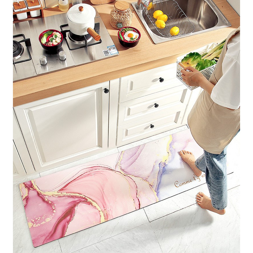 - 45x150cm phù hợp để trải quanh dưới chân kệ bếp, bồn rửa, ngoài ra còn có thể dùng làm thảm phòng khách, phòng ngủ, tiện lợi với mọi hoạt động như đọc sách, làm việc, không gian chơi cho bé