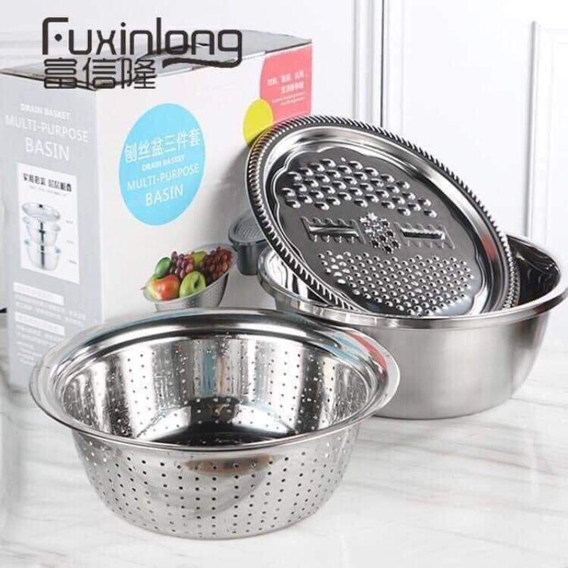 Bộ thau rổ nạo bào inox 3 in 1 ( sẵn hàng )