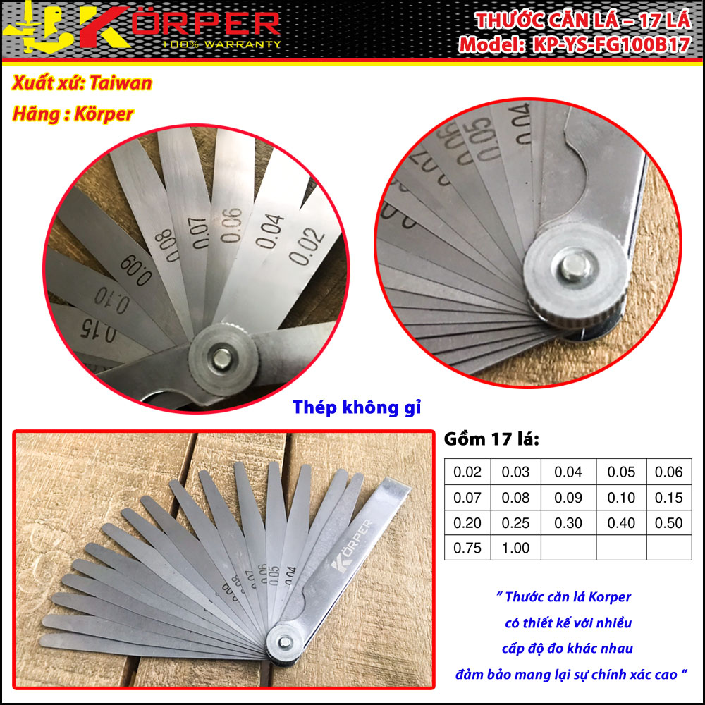 Giới thiệu THƯỚC CĂN LÁ 17 LÁ KÖRPER KP-YS-FG100B17