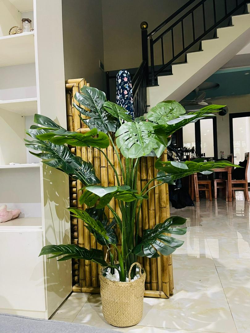 Cây giả – Cây trầu bà lá xẻ nam mỹ monstera giả – Chậu gồm 3 nhánh 18 lá – Cao 130 cm – Cây lá rùa, lá rách – Cây nội thất giả, hoa lụa trang trí decor.