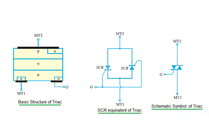 BTA41-800B là linh kiện điện tử thuộc dòng Triac - Thường được coi như một Thyristor (SCR) lưỡng hướng vì có thể dẫn điện theo hai chiều. Hình sau đây cho thấy cấu tạo, mô hình tương đương và cấu tạo của Triac. Như vậy, ta thấy Triac như gồm bởi một thyristor p-n-p-n dẫn điện theo chiều từ trên xuống dưới, kích bởi dòng cổng dương và một thyristor n-p-n-p dẫn điện theo chiều từ dưới lên kích bởi dòng cổng âm. Hai cực còn lại gọi là hai đầu cuối chính (main terminal)