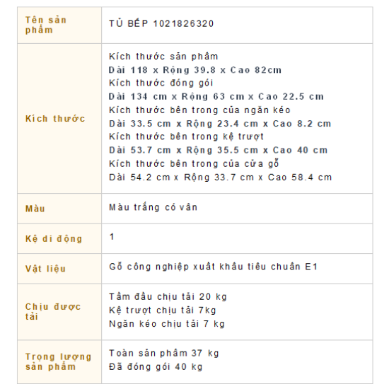 | Kích thước (Dài x Rộng x Cao) | 118 x 39,8 x 82 cm |