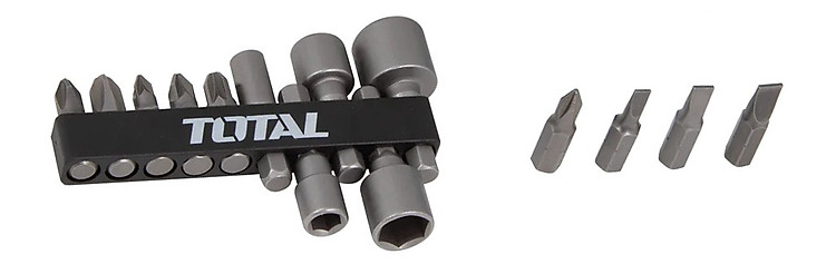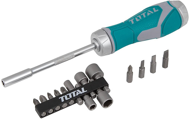 Đa dạng các loại đầu tua vít: Bộ Total TACSD30156 đi kèm với 14 đầu tua vít khác nhau, bao gồm các đầu tua vít phẳng, đầu tua vít chéo, đầu tua vít sao, và đầu tua vít Torx. Điều này cho phép bạn thực hiện các công việc với nhiều loại ốc vít và tiện ích trong việc xử lý các công việc sửa chữa và lắp ráp.