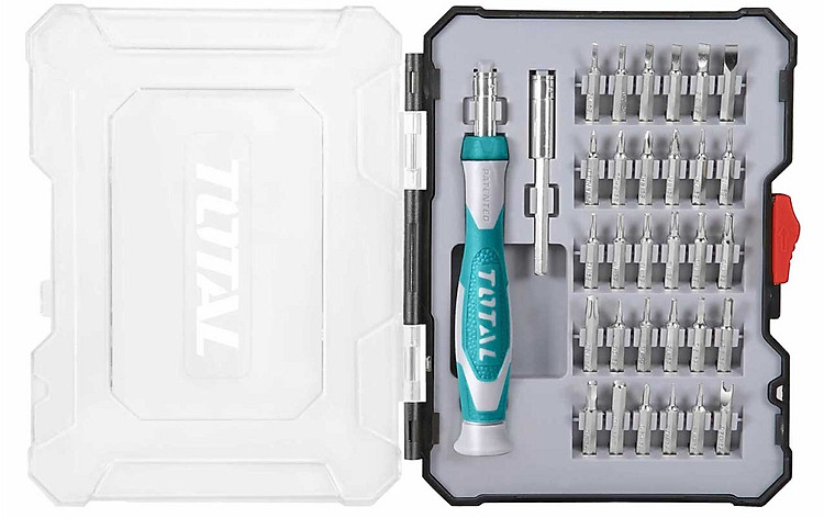 Bộ tua vít chuẩn 32 chi tiết TOTAL TACSD30326 có 30 đầu vít nhỏ gọn chuyên dụng, 1 tay cầm và 1 mũi 4x60mm