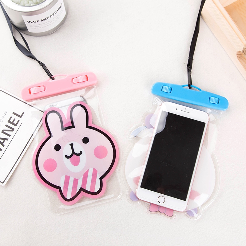 Giới thiệu Túi Đựng Điện Thoại Di Động Chống Nước Thông Dụng In Hình Mặt Mèo/Thỏ Mặt Cười 6 Inch Thông Dụng
