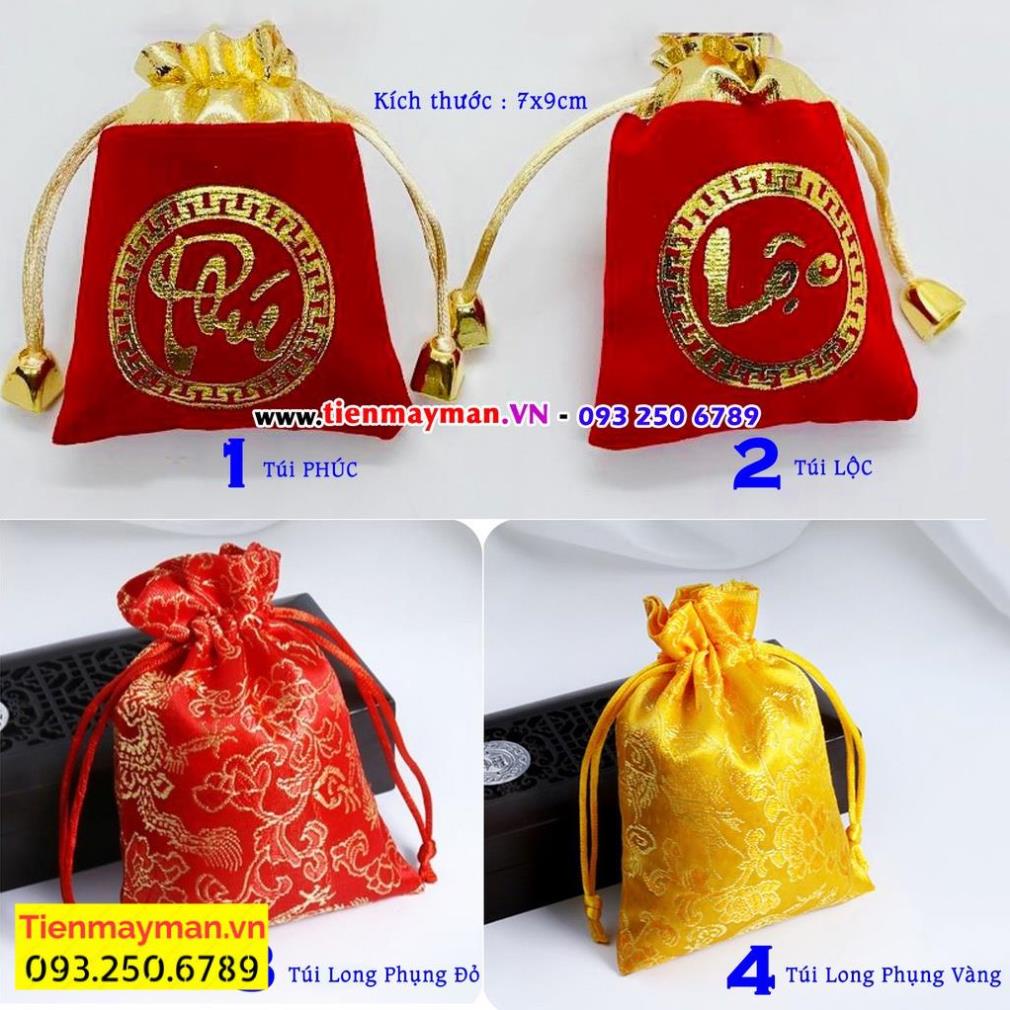 Giới thiệu Túi gấm đỏ , túi gấm vàng phong thủy tài lộc rồng phượng và chữ Phúc Lộc may mắn cát tường