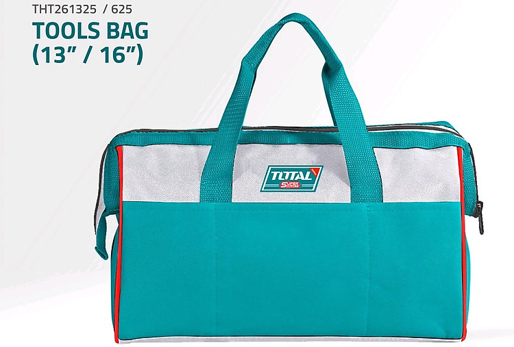 Túi xách đựng dụng cụ đồ nghề TOTAL THT261325 (13in), THT261625 (16in) có nhiều ngăn chứa lớn và nhỏ được làm từ sợi vải Polyeste bền bỉ và chắc chắn, hổ trợ bạn mang theo sản phẩm ở bất cứ nơi đâu