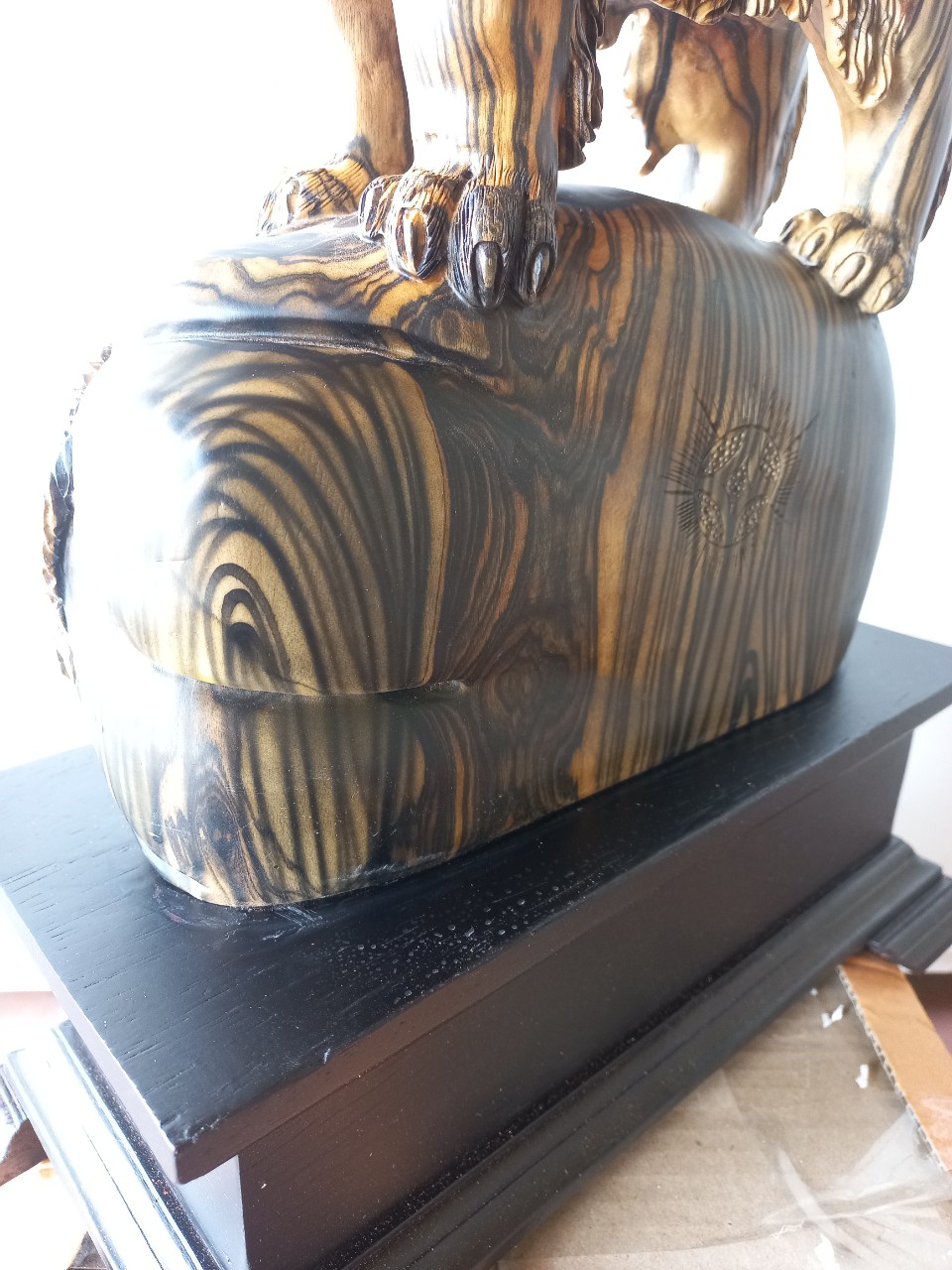 _ Tượng con cún xinh được trạm khắc tỉ mỉ ,tinh sảo kỳ công kết hợp với kệ chân kỷ .Đi hầu hết tất cả mọi chi tiết chí tiết góc ngách nội dung hoa văn của tượng đều được gọt tỉa chỉnh cực sắc nét hoàn toàn bằng tay thủ công .Đồng tượng được kiểm định kỹ lưỡng khắt khe ,như cho vào thẩm sấy cho gỗ khô kiệt .Mục đích trống dập nứt vênh mo mối mọt ,kết hợp với trà nhám ,đánh giấy giáp nhiều nước sờ mát lạnh .Song cho vào phun lót làm bóng mờ để giữ lại mầu sắc vân gỗ tự nhiên .Tượng con cho được làm và hoàn thiện do bàn tay khối óc tài hoa , Từ những người thợ dầy rặn kinh nghiệm ,cũng như tay nghề cao trong làng nghề truyền thống .Chính vì thế tượng con chó bằng gỗ mun đã đáp ứng đầy đủ mọi tiêu trí cần thiết như ( Đẹp bền rẻ ) Thẩm mỹ nghệ thuật với chất lượng tuyệt vời