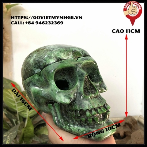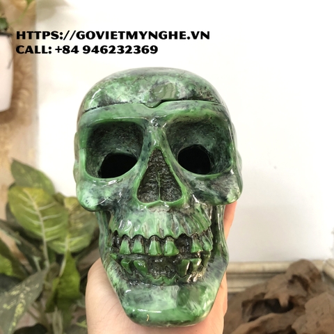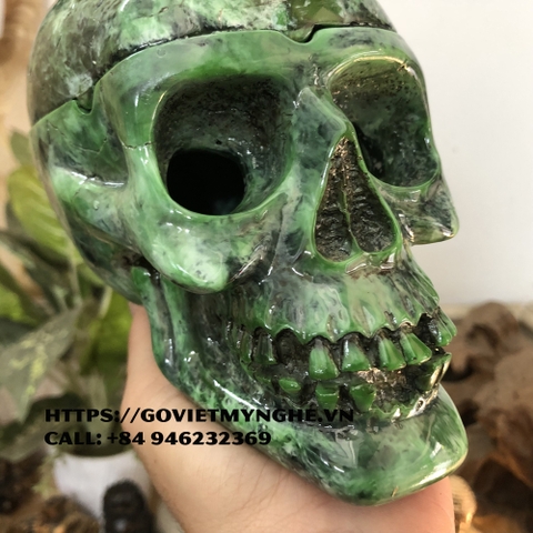 ModelTượng đá trang trí hình đầu lâu - Gạt tàn thuốc trang trí hình Đầu Lâu - Màu xanh lục bích - Size Lớn Dài 16cm